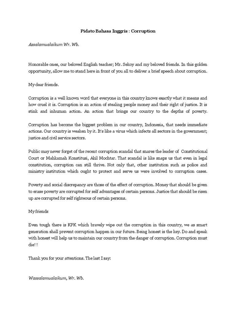 Pidato Bahasa Inggris Singkat Tentang Korupsi Docx