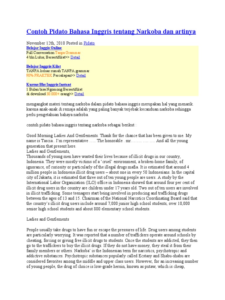 Contoh Pidato Bahasa Inggris Tentang Narkoba Dan Artinya