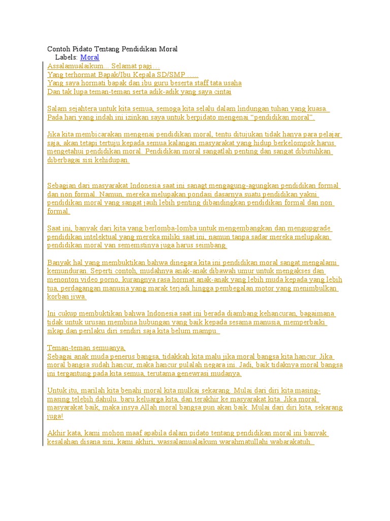 Contoh Pidato Bahasa Inggris Tentang Pendidikan Moral Pdf Document