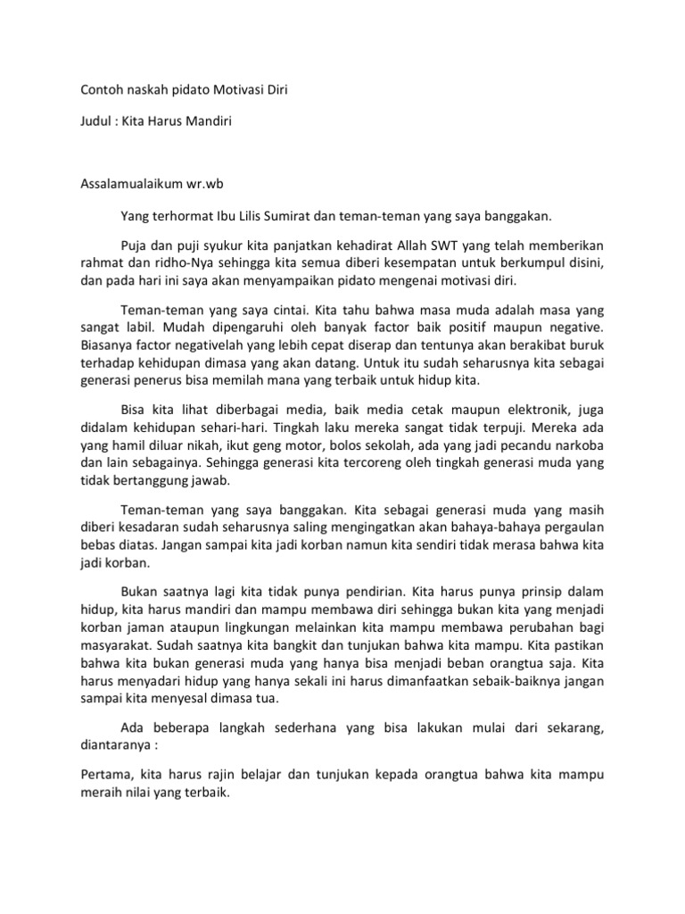 Contoh Naskah Pidato Motivasi Diri