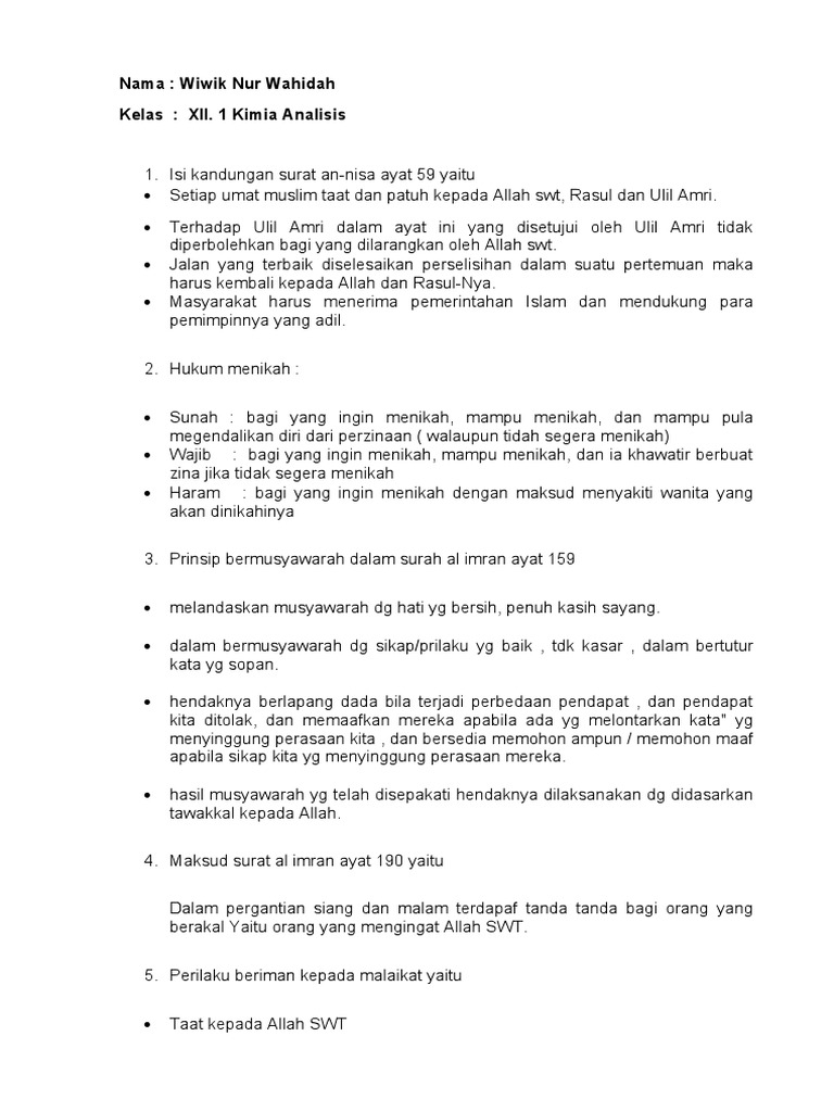 Tugas Pabp Isi Kandungan Surat Al Maidah Ayat 48 Surat An Nisa Ayat 59 Surat At Taubah Ayat 105 Youtube from i.ytimg.com 59)tafsir surat an nisaa : Tajwid surat an nisa ayat 59. Dalil tentang perintah ta'at kepada allah, rasul utusan allah dan pemimpin bagi orang yang beriman. Setiap garis atau lingkaran yang memiliki warna sama berarti tajwidnyapun sama. Yang jatuh pada waqof diakhir kalimat. Jika melihat sisi isi kandungan pada ayat ini yaitu sebuh perintah bagi kaum muslim agar menaati putusan hukum, yang secara hirarkis dimulai dari demikian tulisn mengenai surat an nisa ayat 59 dalam bahsa arab dan latin serta terjemahannya dalam bahasa indonesia dan inggris, juga. Σv = jumlah varian kata (berdasarkan akar kata). Setelah mengetahui ayat dan terjemahnnya.